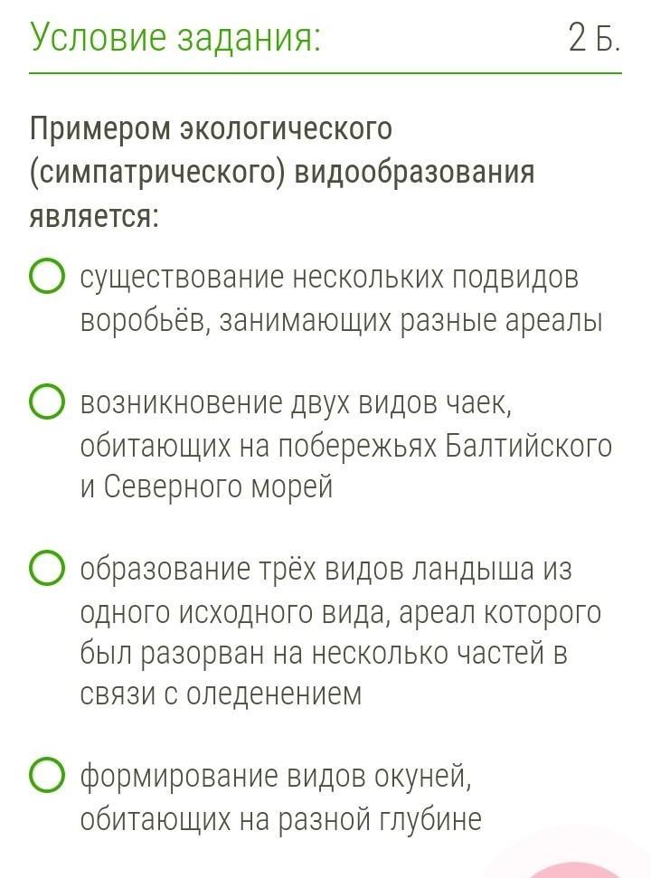 Объяснение : Экологическое видообразование - Образование нового вида путём освоения особями нового места обитания, не выходя за пределы аре ла.